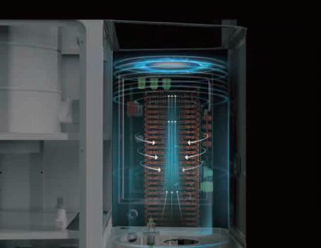 氣(qi)流,通過壹(yi)種空(kong)氣(qi)動力學導流葉片腔變(bian)成(cheng)高速(su)旋轉(zhuan)的(de)螺旋氣流,達到(dao)每分(fen)鐘(zhong)4000轉(zhuan),從(cong)而產(chan)生(sheng)超(chao)過100倍於重(zhong)力的(de)離心力。99.7%的(de)粉(fen)塵(chen)顆(ke)粒(li)在(zai)此(ci)離